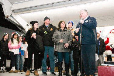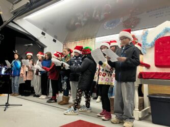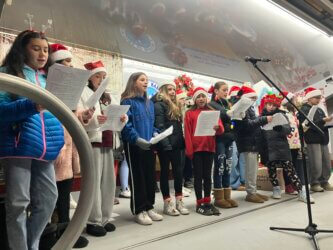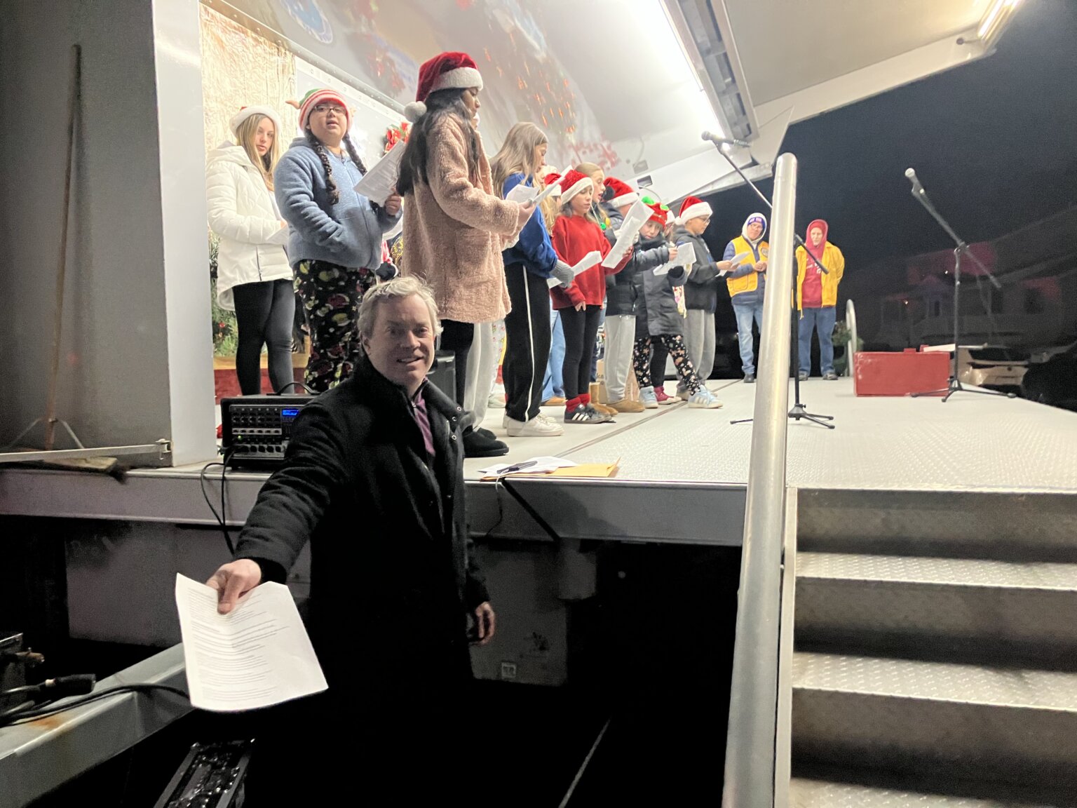 Mr. Doran, the Music Chairperson for the WB School District was there with his chorus students singing all the Holiday favorites.